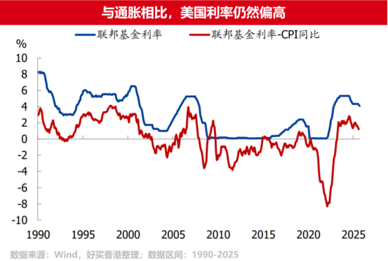 貨幣轉(zhuǎn)向明確:美聯(lián)儲在2025年累計(jì)降息75個基點(diǎn)后,利率水平仍然較高,盡管路徑存在分歧,降息周期方向未改。利率下行將緩解高利率對成長股估值的壓制,為科技等板塊提供流動性支持。